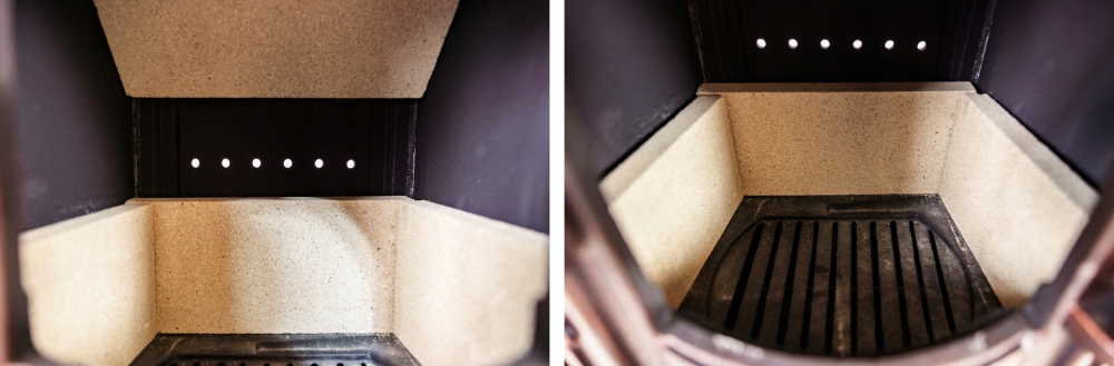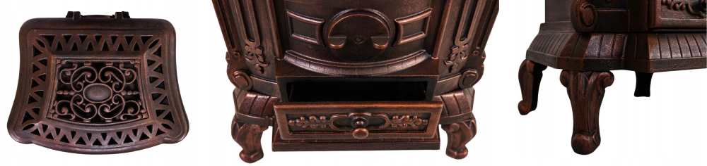 ✔️ Wyposażony w ruszt żeliwny - Zwiększa on wydajność spalania. Dzięki swojej konstrukcji zapewnia bezproblemową cyrkulacje powietrza